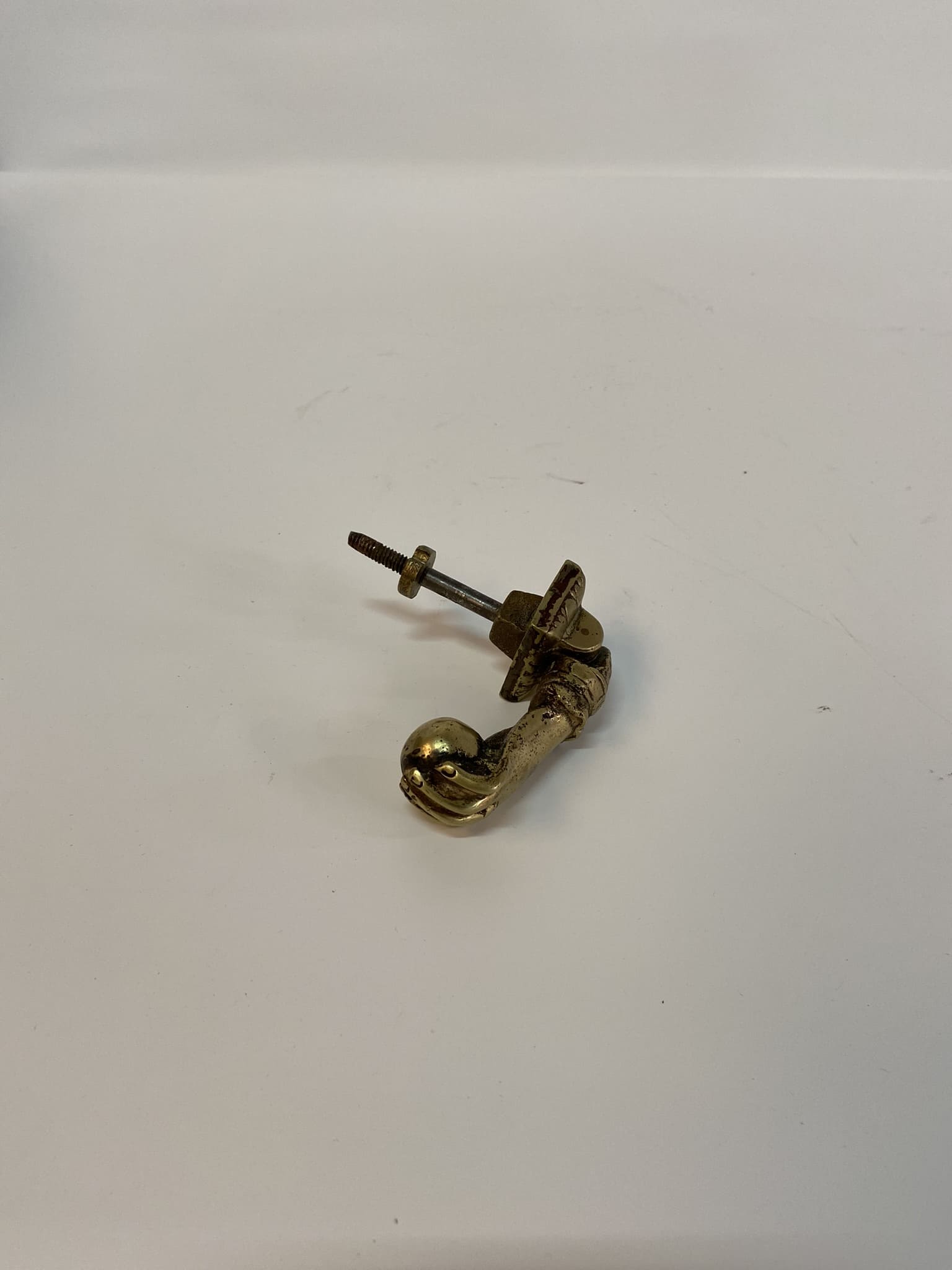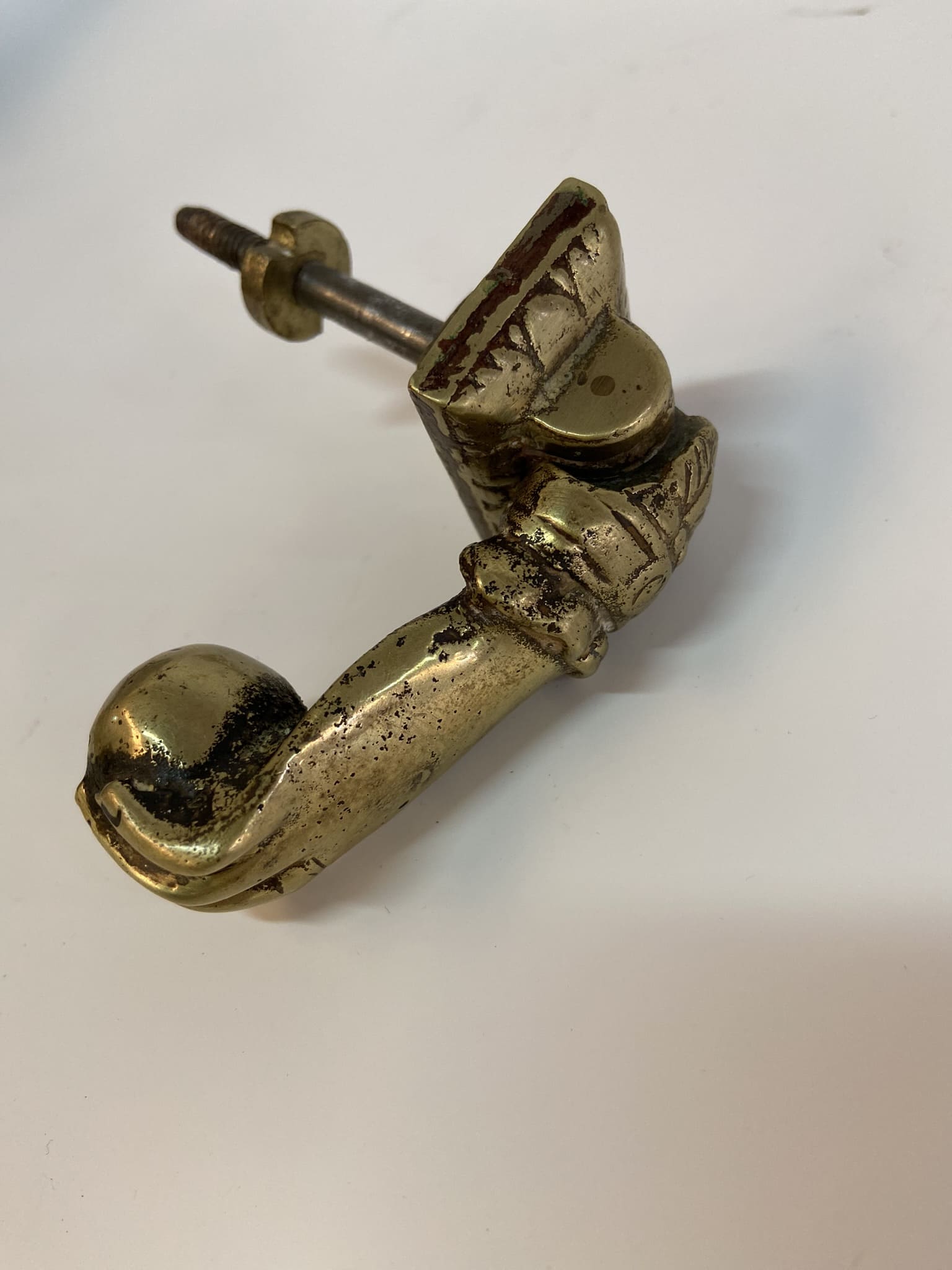 Pomo con forma de mano de metal.